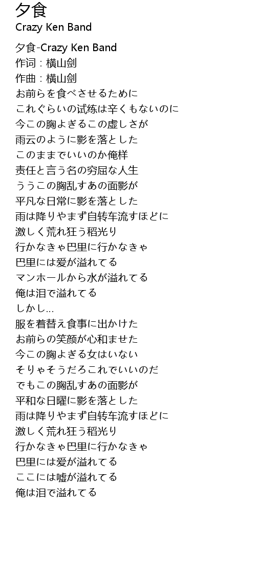 | [00:00.26] | 夕食-Crazy Ken Band |