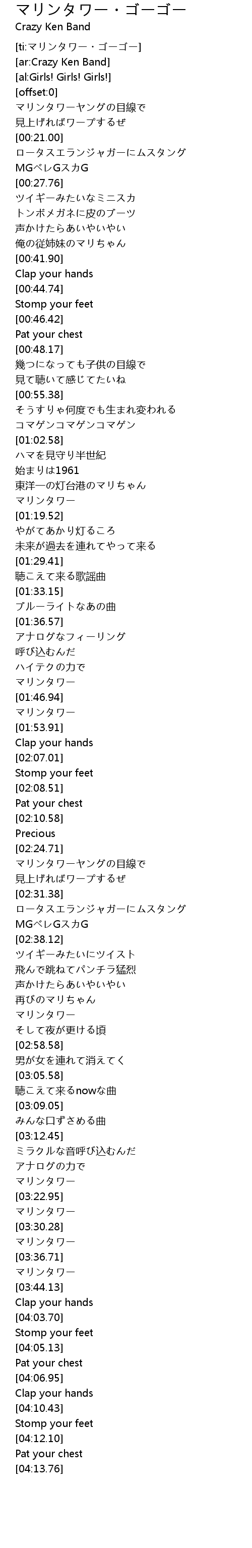 | [ti:マリンタワー・ゴーゴー] | |