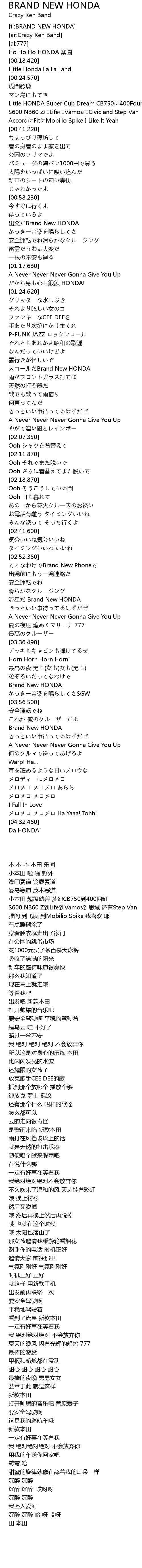 | [00:14.490] | Ho Ho Ho HONDA 楽園 |