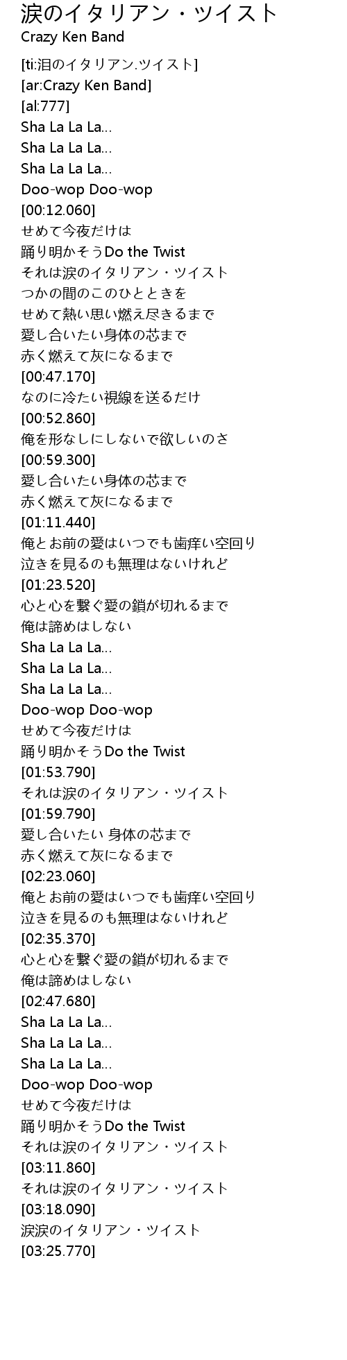 | [03:18.720] | 涙涙のイタリアン・ツイスト |