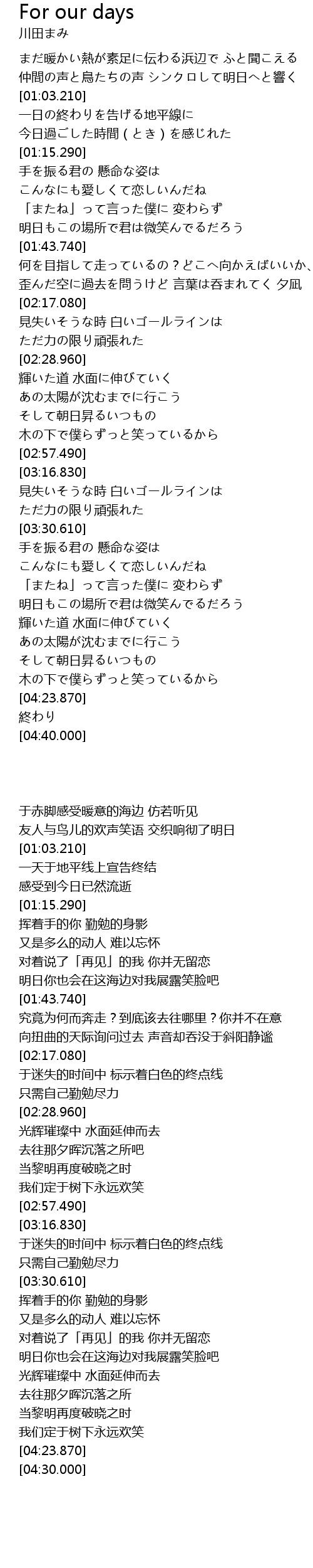 | [02:17.410] | 見失いそうな時 白いゴールラインは |