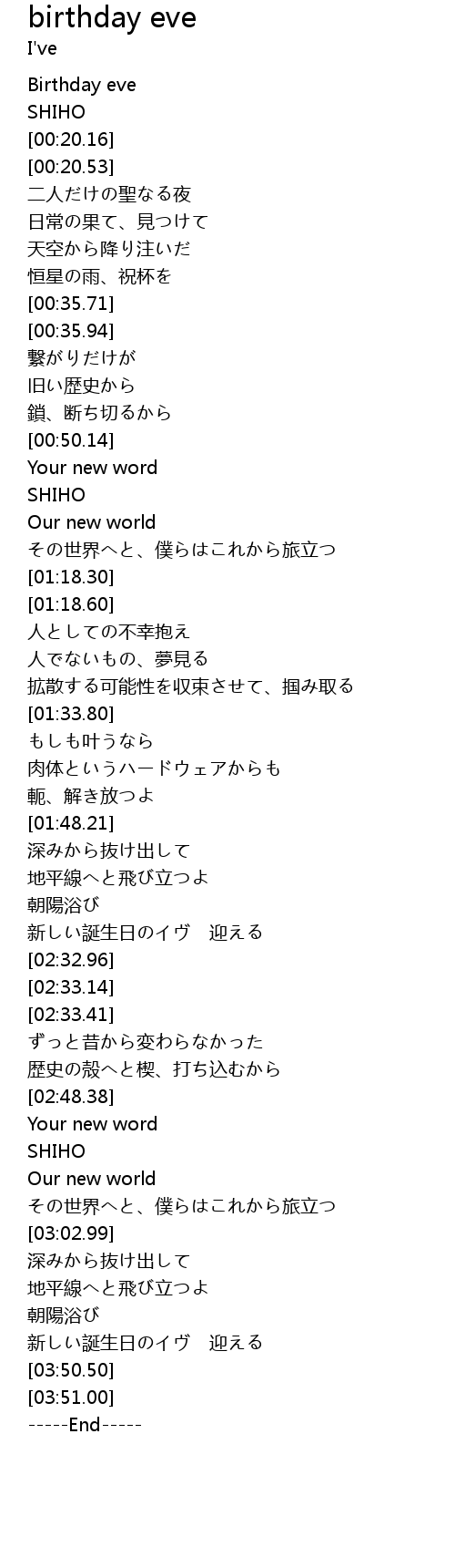 | [03:12.08] | 新しい誕生日のイヴ 迎える |