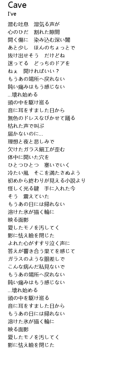 | [01:34.786] | 欠けたガラス細工が歪む |