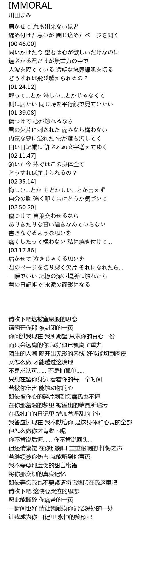 | [01:59.74] | 白い日記帳に 許されぬ文字増えてゆく |