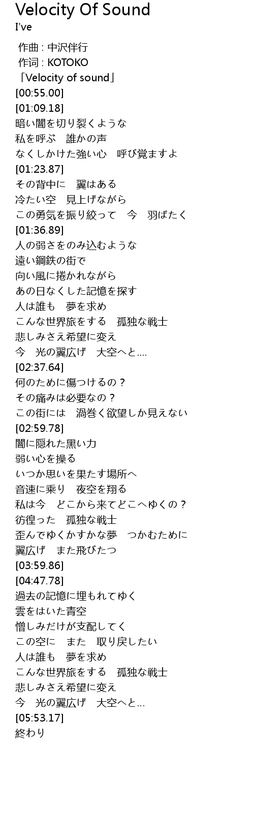 | [00:00.00] | 「Velocity of sound」 |
