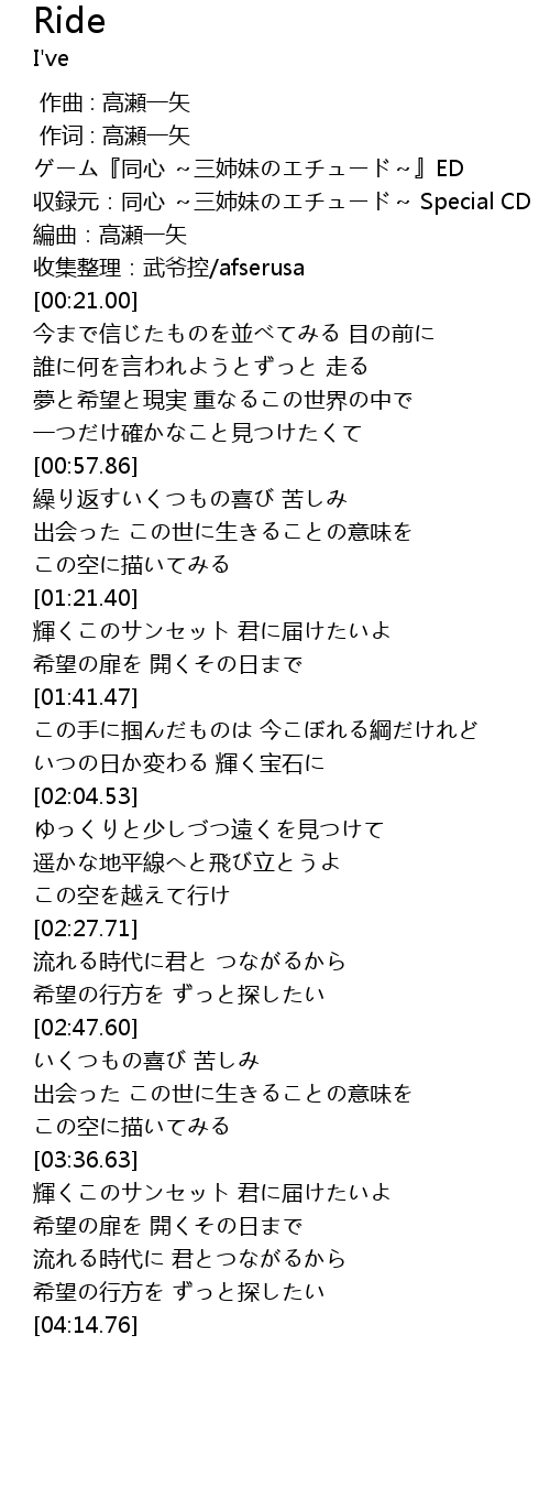 | [00:02.00] | ゲーム『同心 ~三姉妹のエチュード~』ED |