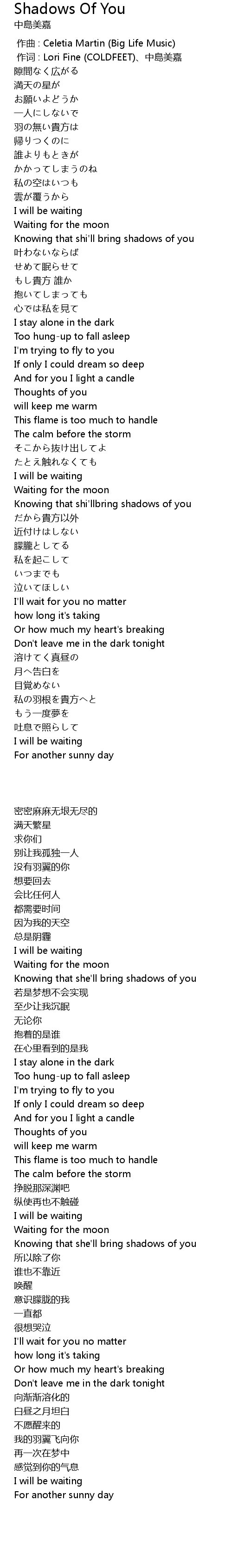 | [02:21.83] | Knowing that shi'llbring shadows of you |