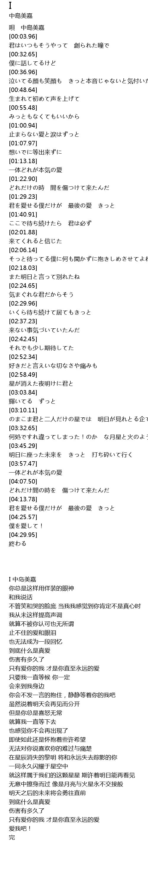 | [04:27.58] | 僕を愛して! |
