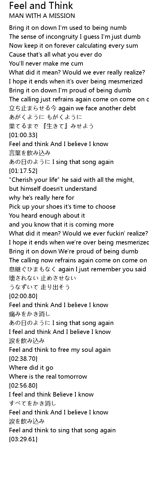 | [00:37.97] | The calling just refrains again come on come on come on |