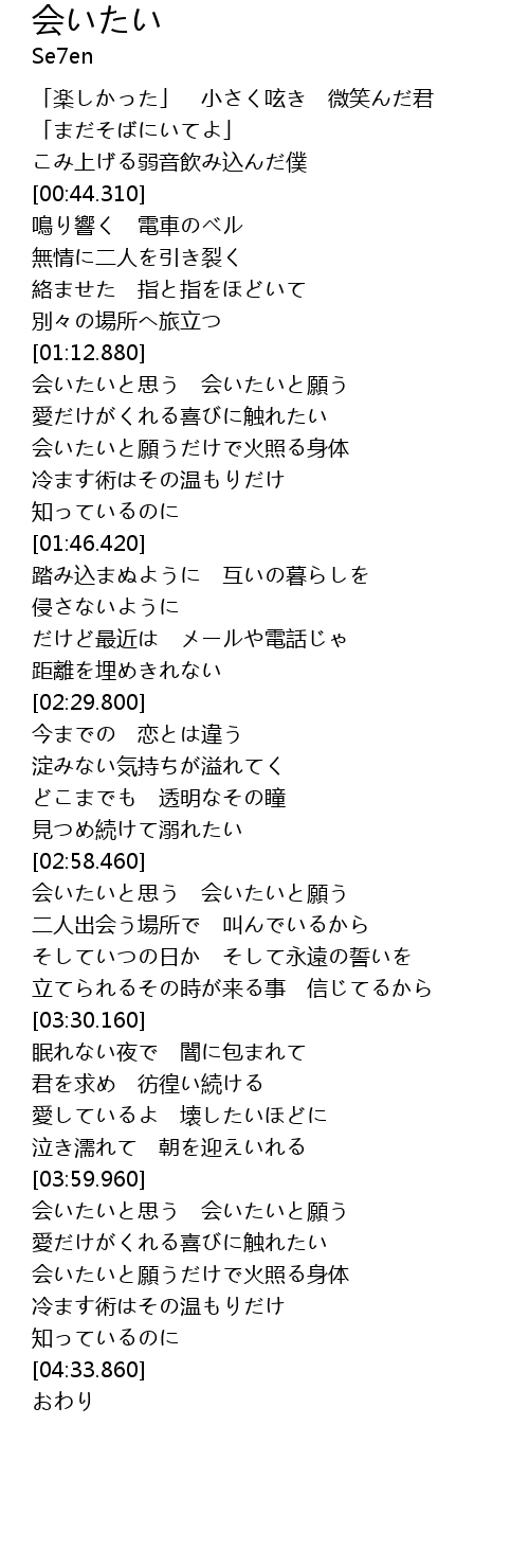 | [02:58.829] | 会いたいと思う 会いたいと願う |