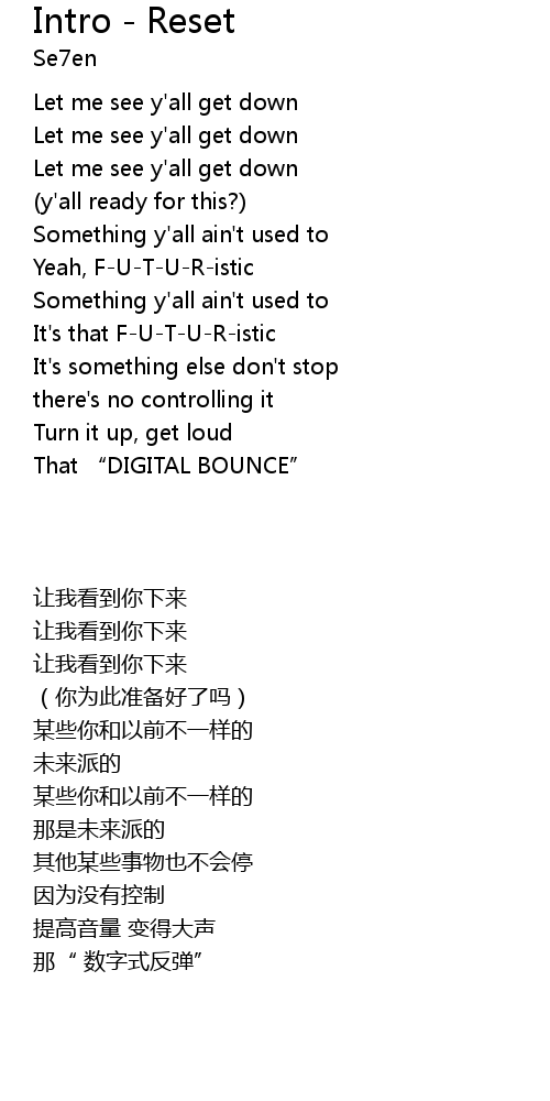 | Song | Intro - Reset |