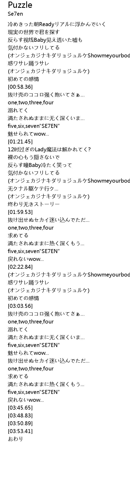| [03:38.99] | five,six,seven"SE7EN" |