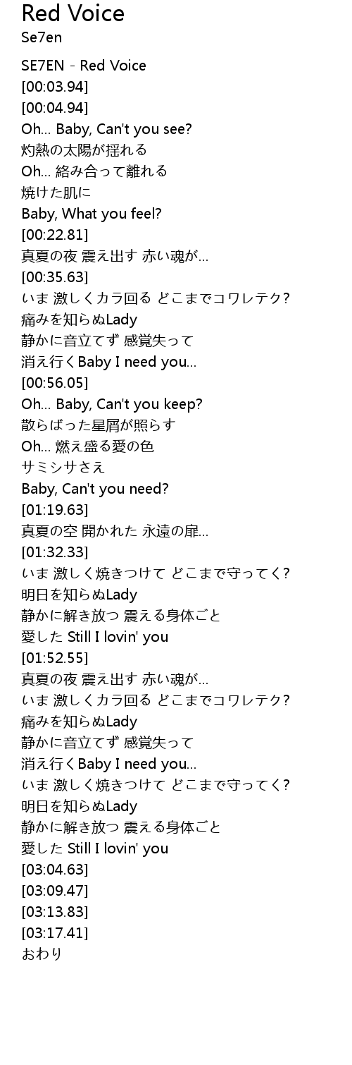 | [00:05.94] | Oh... Baby, Can' t you see? |