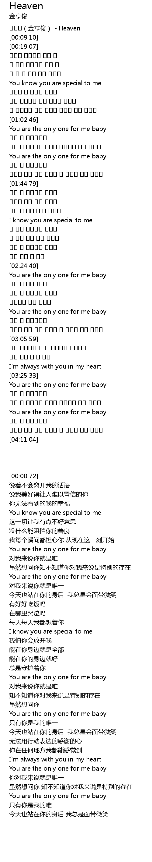 | [00:00.72] | 김형준(金亨俊) - Heaven |