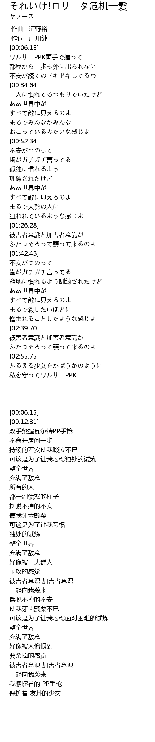 | [03:01.94] | 私を守ってワルサーPPK |