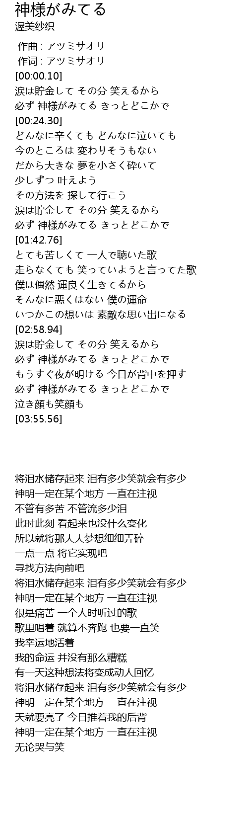 | [03:36.74] | 必ず 神様がみてる きっとどこかで |