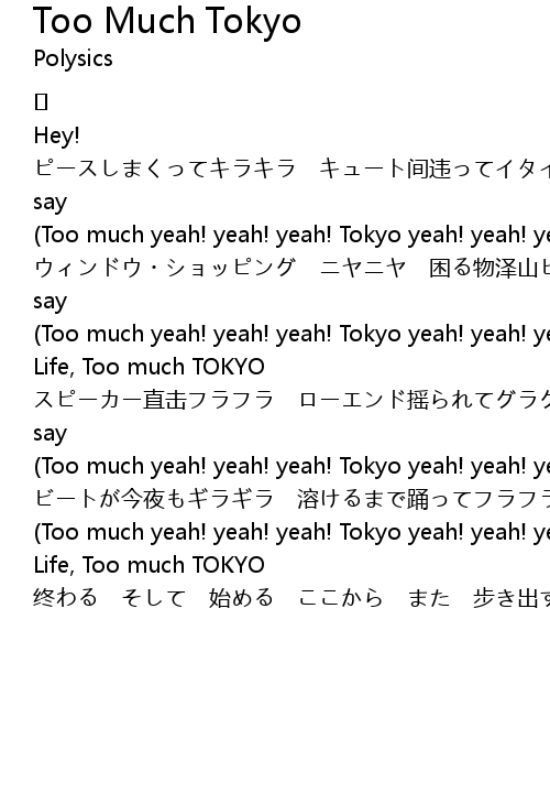 | (Too much yeah! yeah! yeah! Tokyo yeah! yeah! yeah!) | |