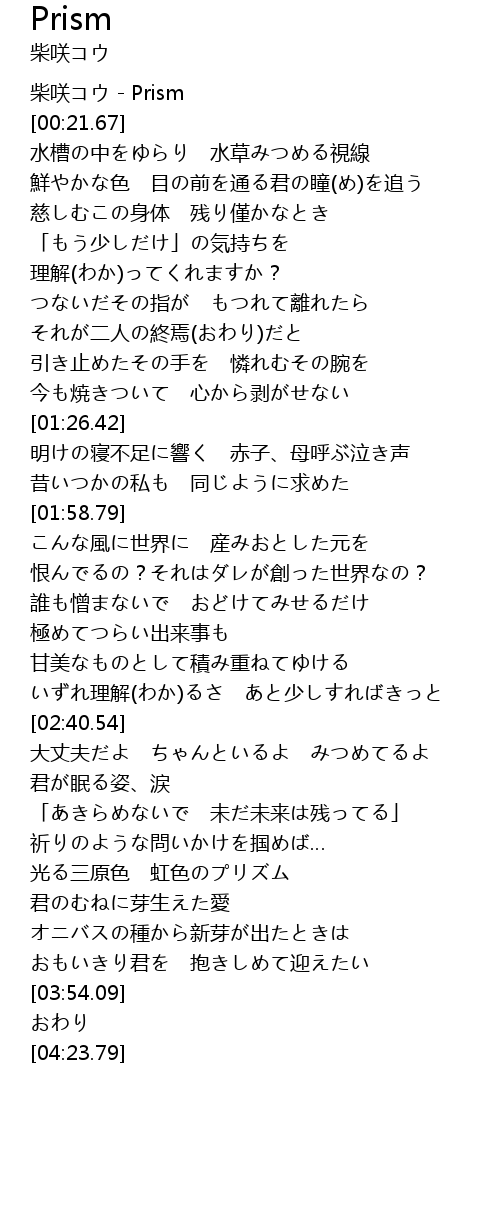 | [00:00.00] | 柴咲コウ - Prism |
