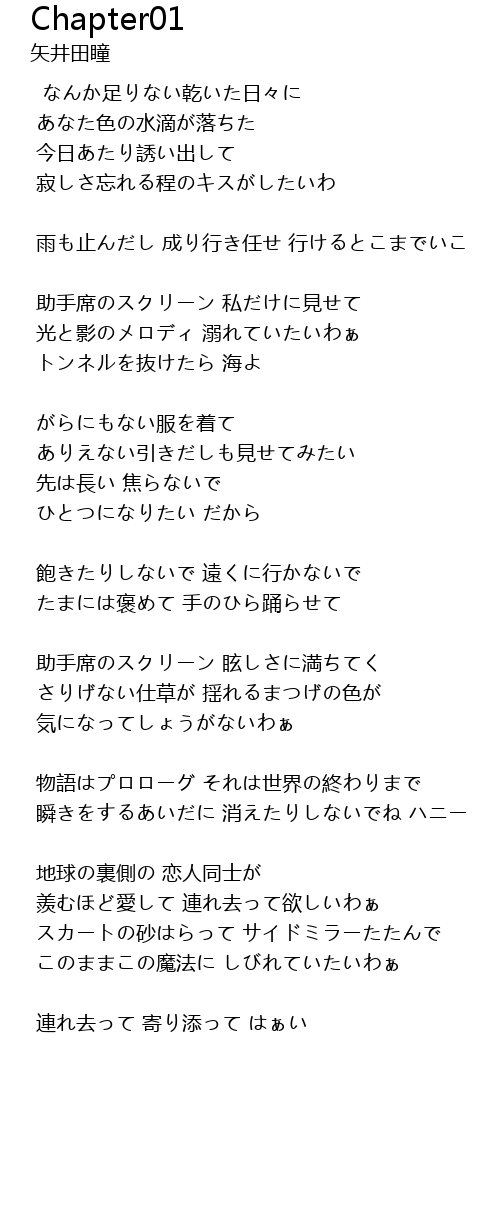 | 羨むほど愛して 連れ去って欲しいわぁ | |