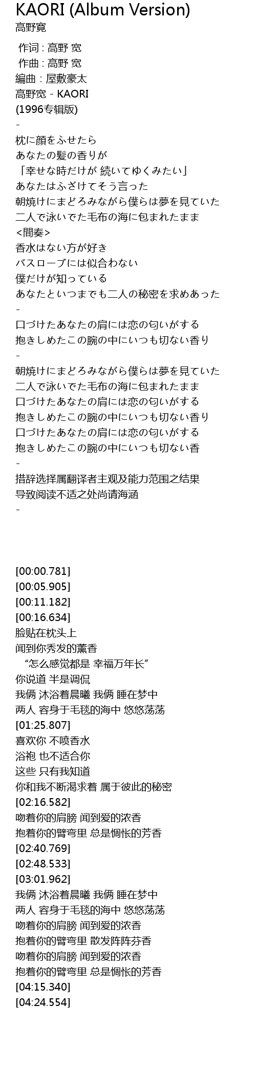 | [03:53.679] | 口づけたあなたの肩には恋の匂いがする |