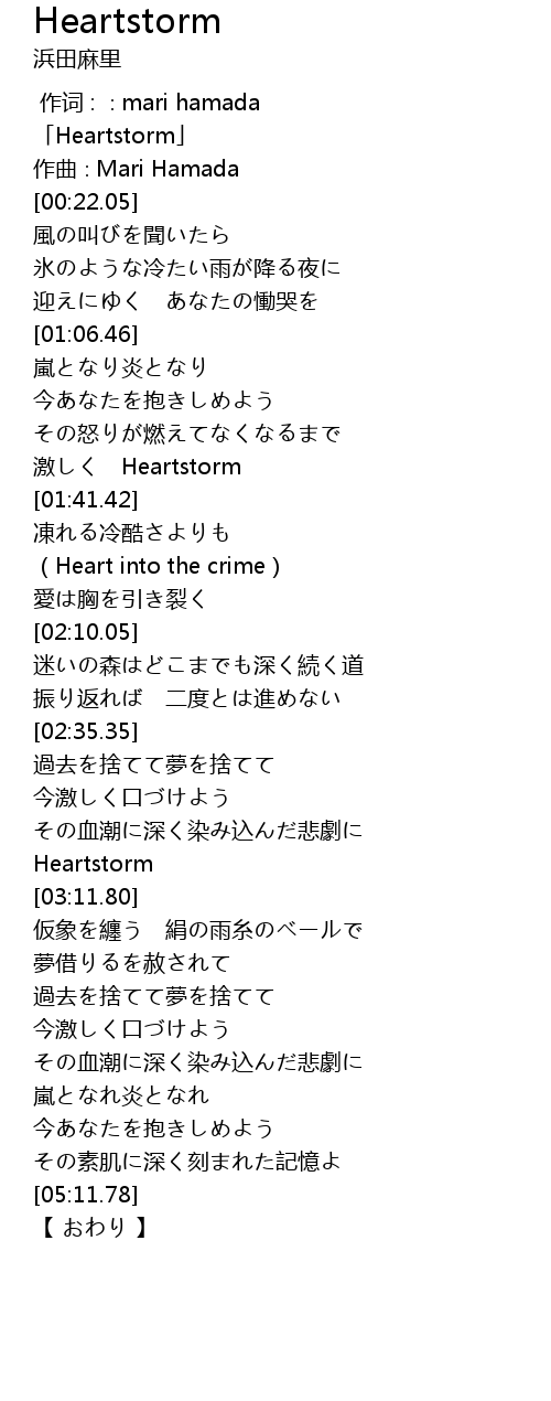 | [00:01.05] | 「Heartstorm」 |