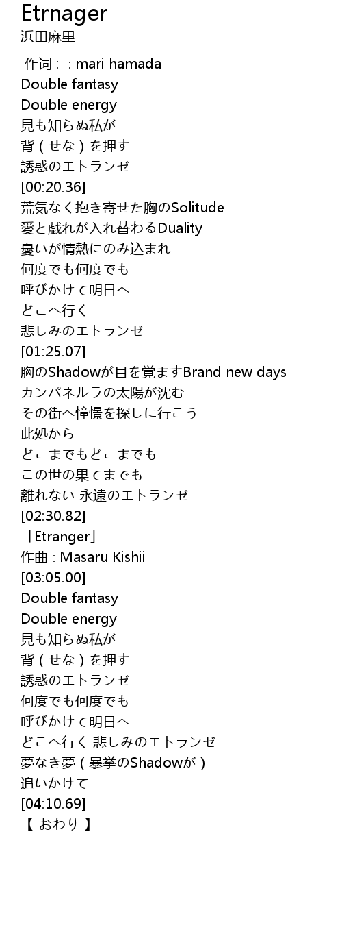 | [02:35.00] | 「Etranger」 |