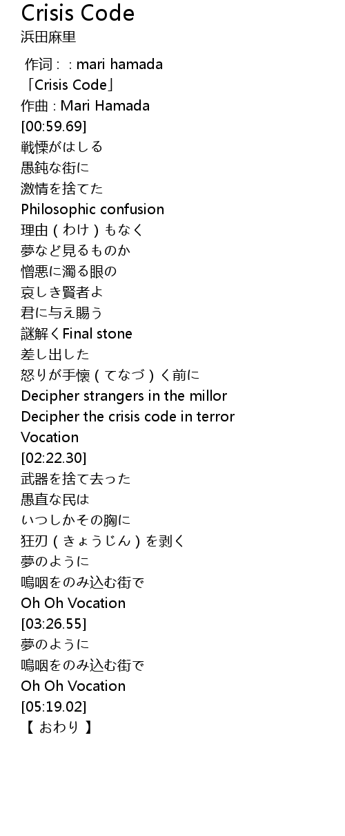 | [00:39.69] | zuò qǔ Mari Hamada |