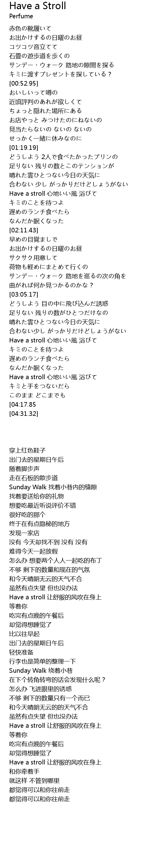 | [03:31.19] | Have a stroll 心地いい風 浴びて |