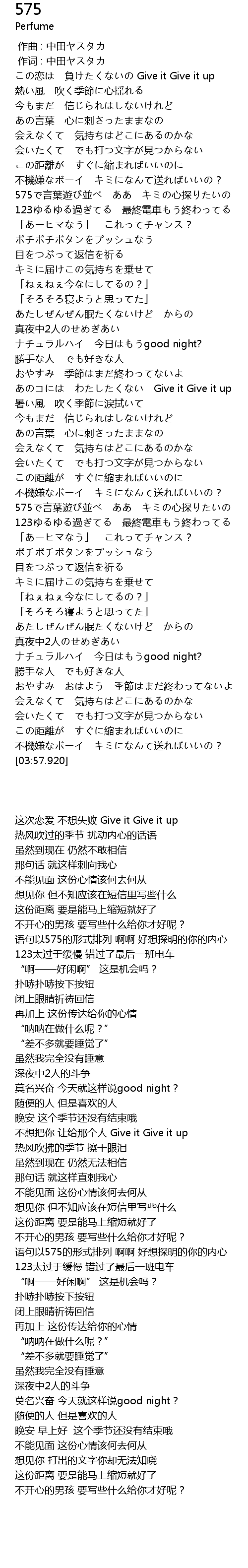 | [00:01.00] | 作词 : 中田ヤスタカ |