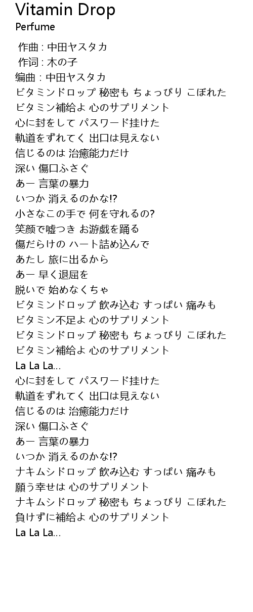 ビタミンドロップ 秘密も ちょっぴり こぼれた |