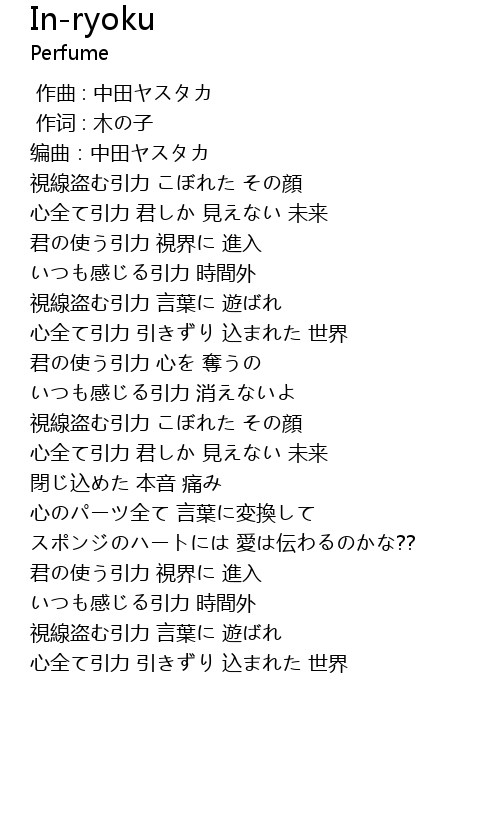 | Song | In-ryoku |