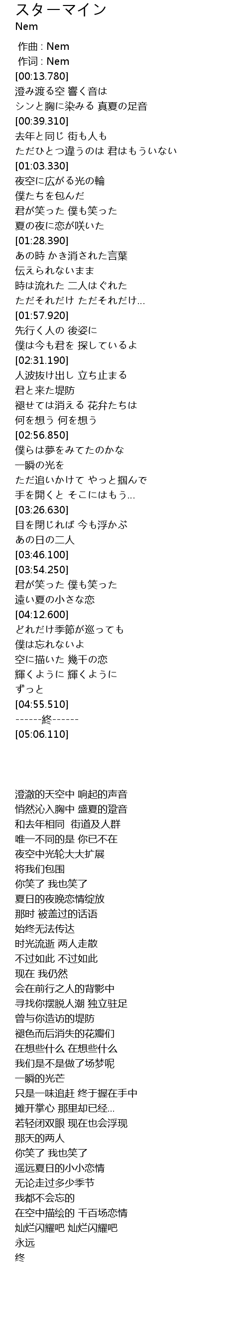 | [01:22.860] | 夏の夜に恋が咲いた |