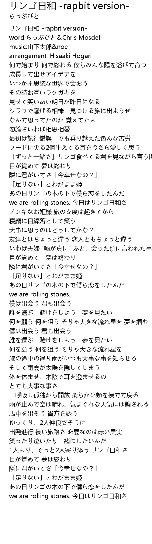 | [00:02.62] | リンゴ日和 -rapbit version- |