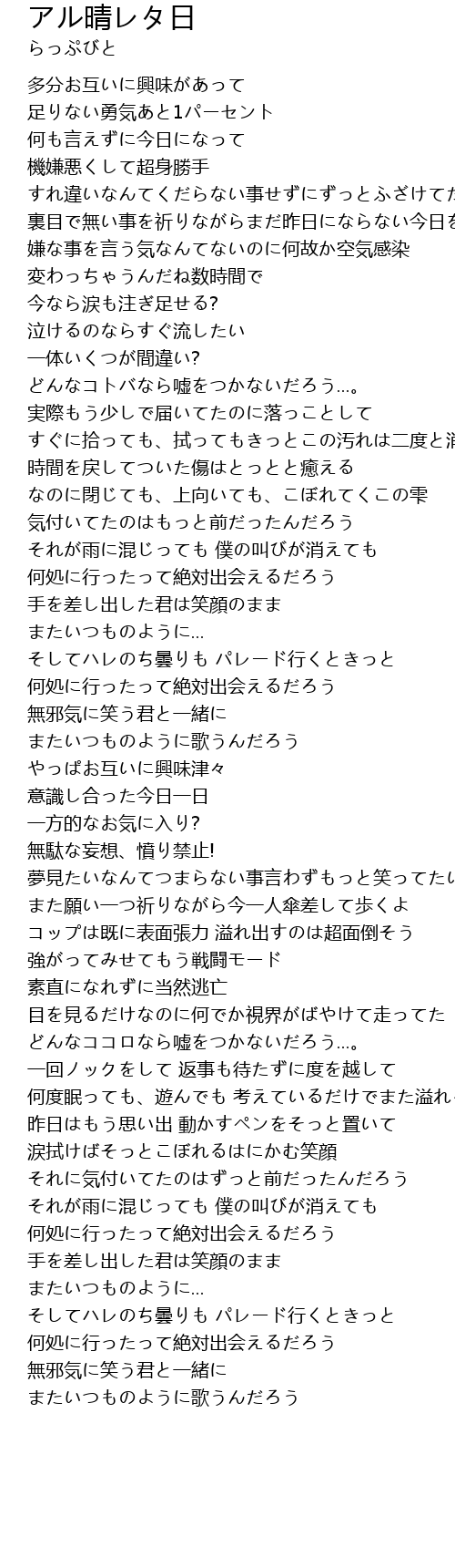 | そしてハレのち曇りも パレード行くときっと | |