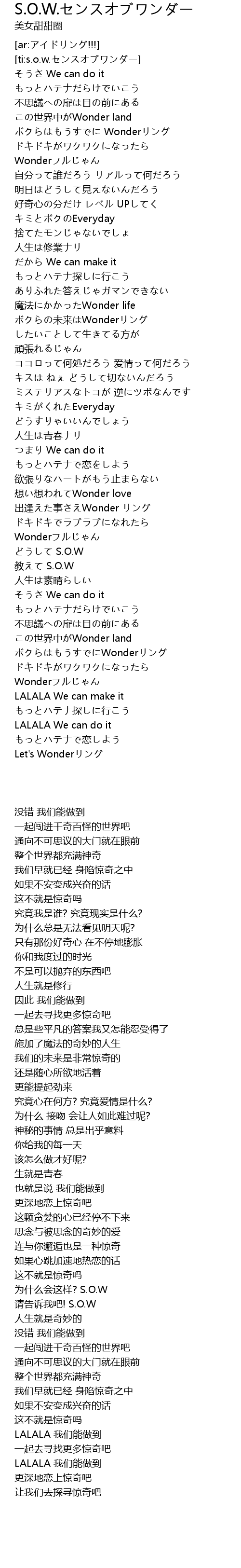 | [00:14.76] | ボクらはもうすでに Wonderリング |
