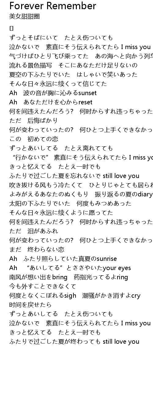 | Song | Forever Remember |
