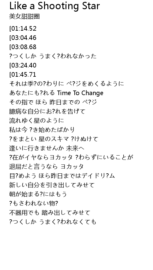 | [00:07.81][01:14.52][03:00.86] | Like a Shooting Star |