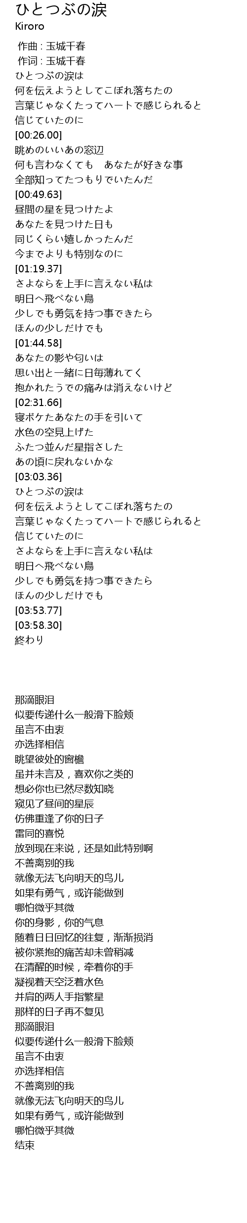 | [00:00.49] | ひとつぶの涙は |