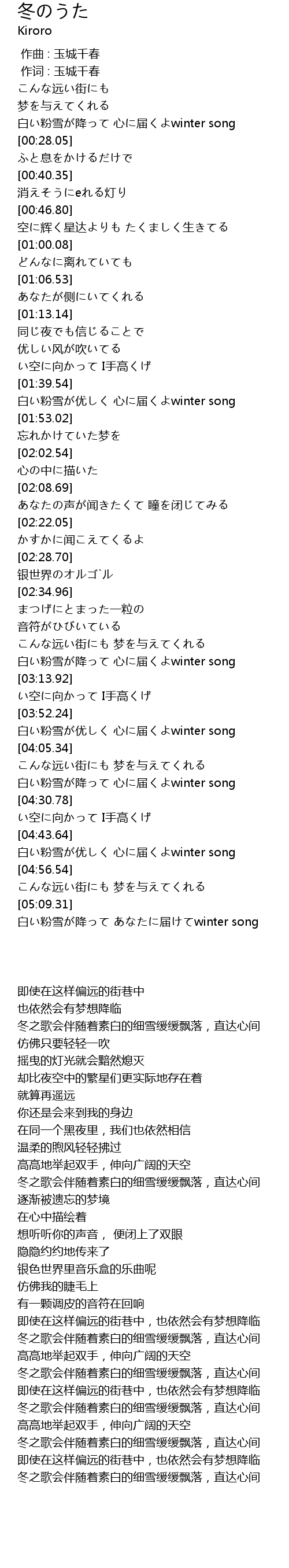 | [03:52.94] | 白い粉雪が优しく 心に届くよwinter song |
