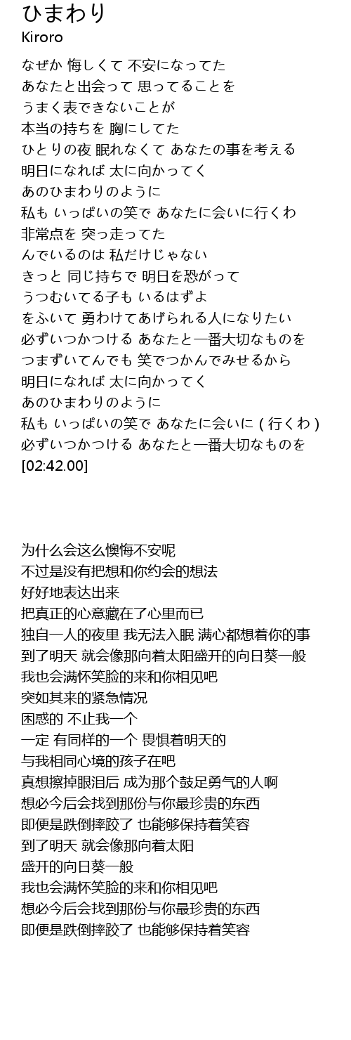 | [02:38.99] | 私も いっぱいの笑で あなたに会いに(行くわ) |