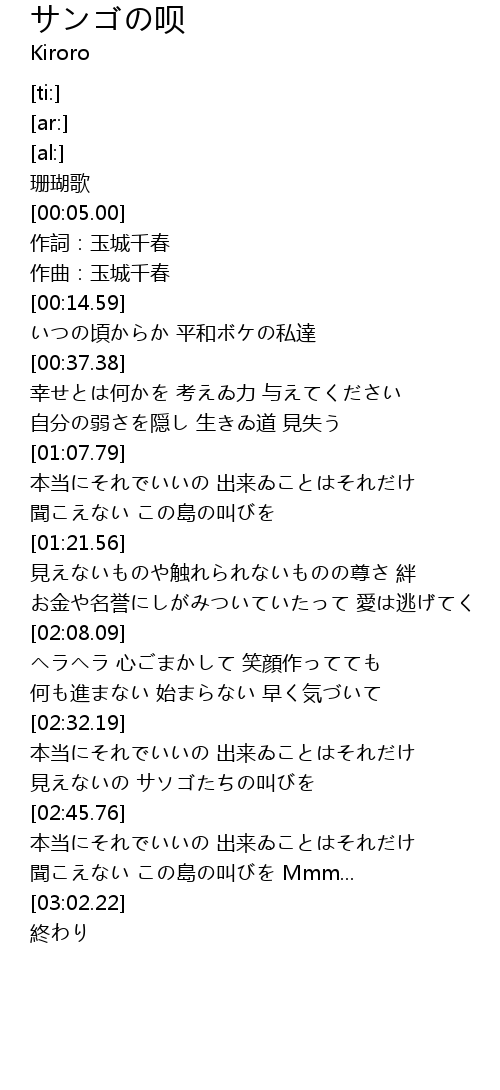 | [02:39.57] | 見えないの サソゴたちの叫びを |