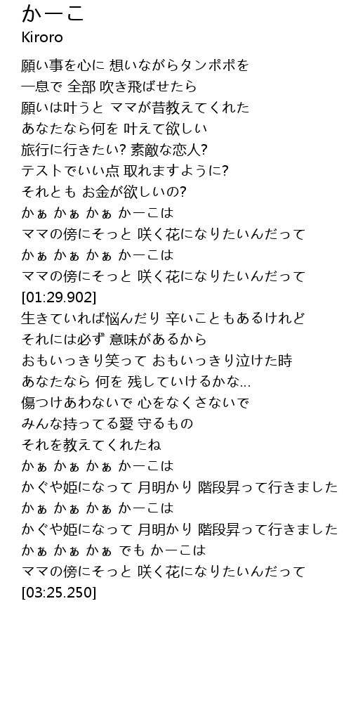 | [02:53.520] | かぁ かぁ かぁ かーこは |