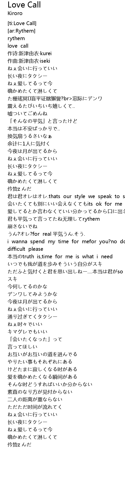 | [02:45.603] | 君も平気って言ってたね无理してrythem 崩さないでね |