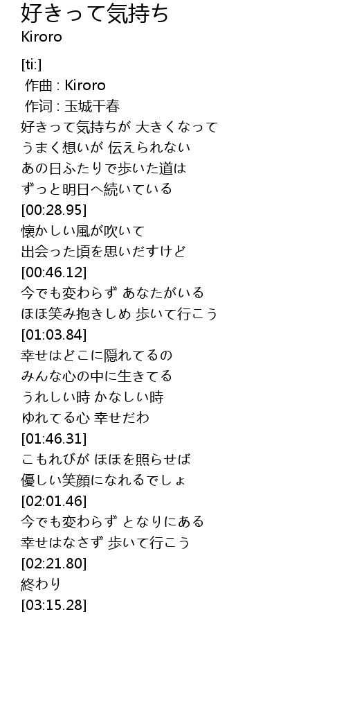 | [00:01.11] | 好きって気持ちが 大きくなって |