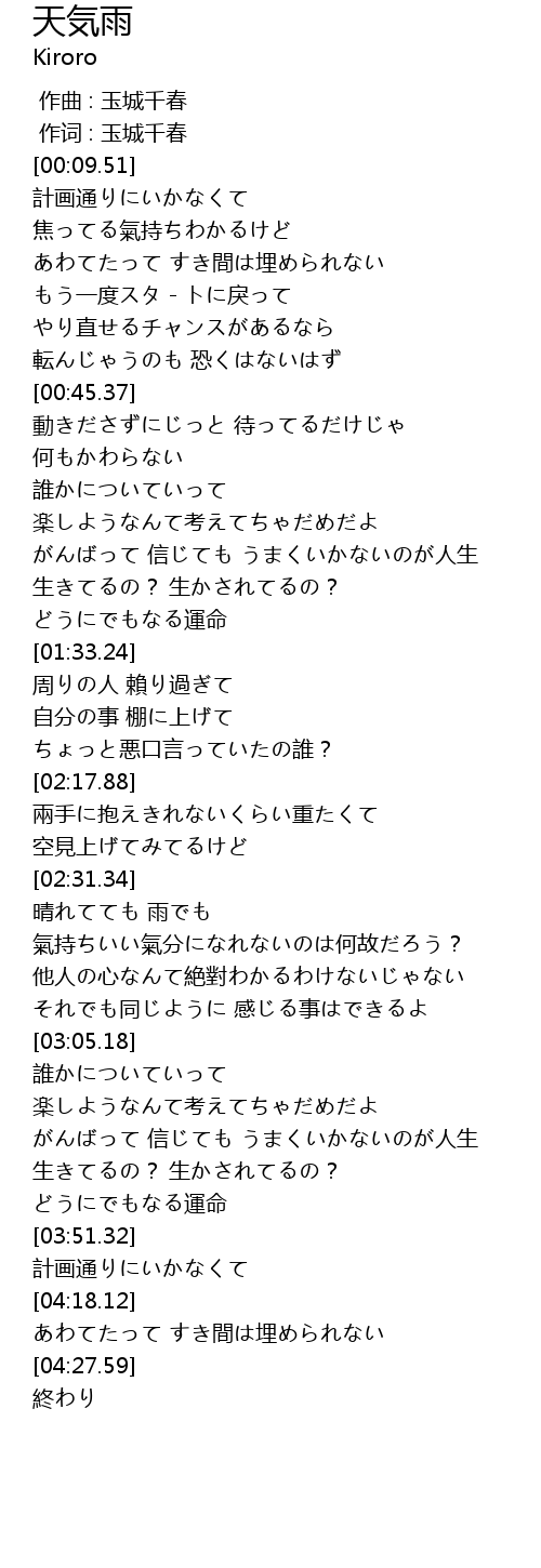 | [03:34.57] | がんばって 信じても うまくいかないのが人生 |