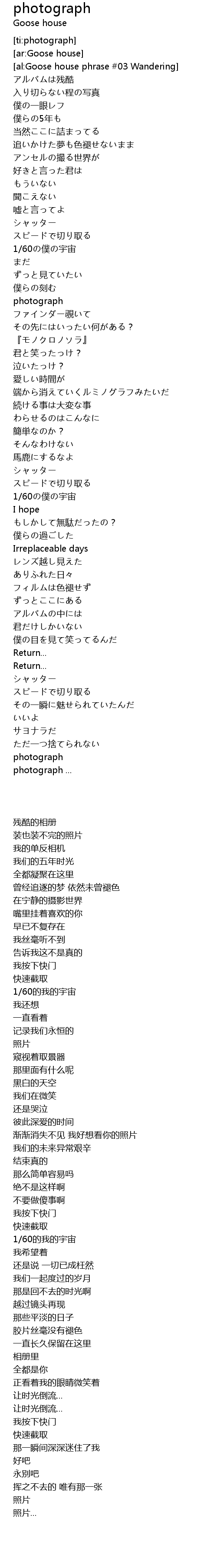 | [01:47.56] | 端から消えていくルミノグラフみたいだ |