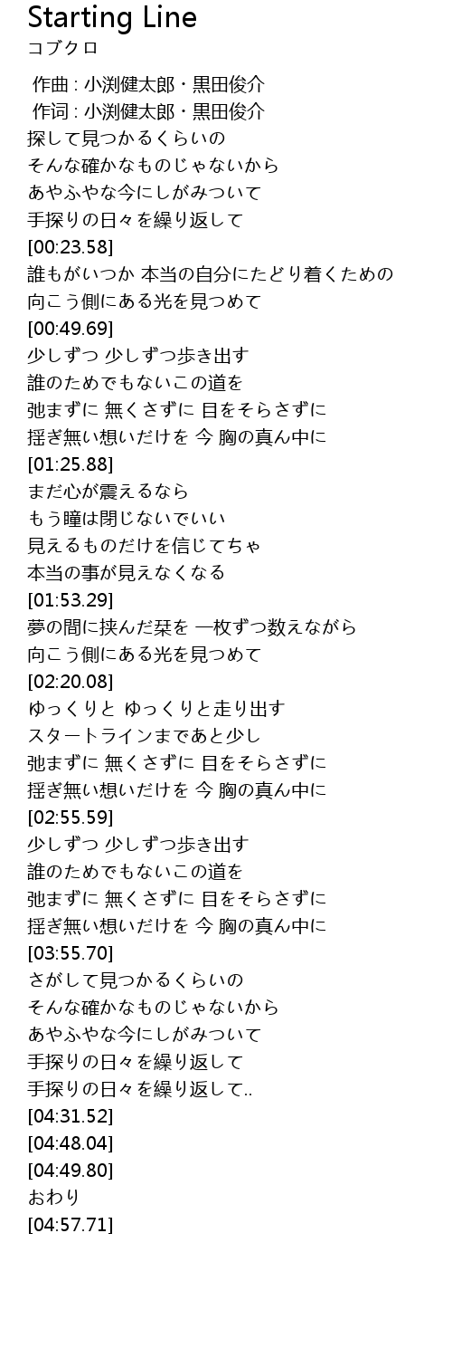| [00:00.00] | 作曲 : 小渕健太郎・黒田俊介 |