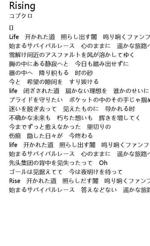 | Rise 开かれた道 照らしだす闇 鸣り响くファンファーレ | |