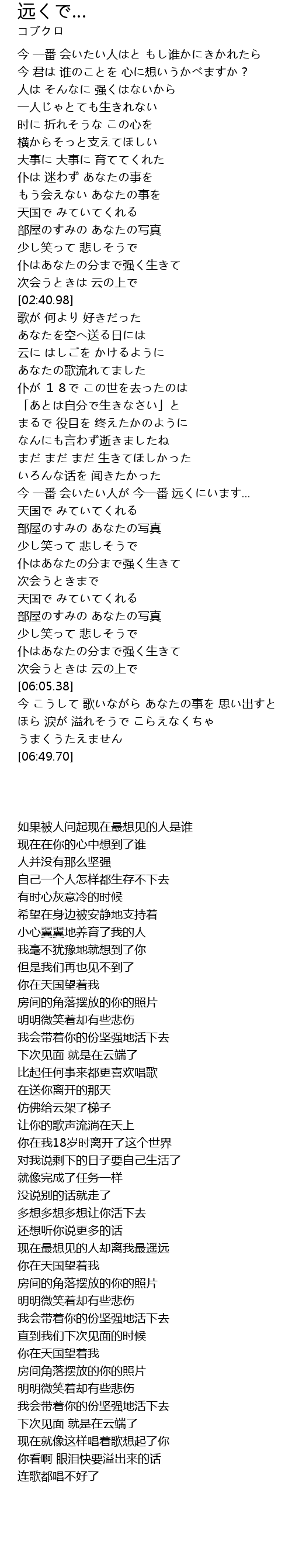 | [05:47.10] | 仆はあなたの分まで强く生きて |