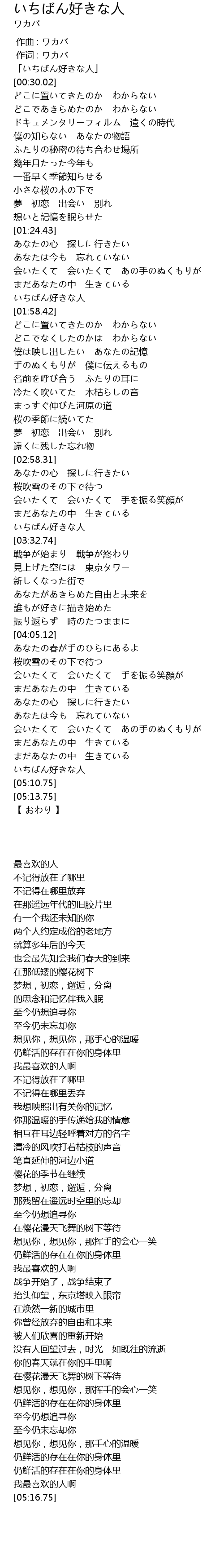| [05:02.11] | いちばん好きな人 |